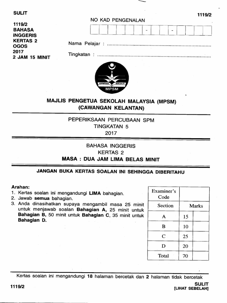 Mpsm Kelantan Trial Exam Paper English 1119 Paper 2 Part 1 Pdf